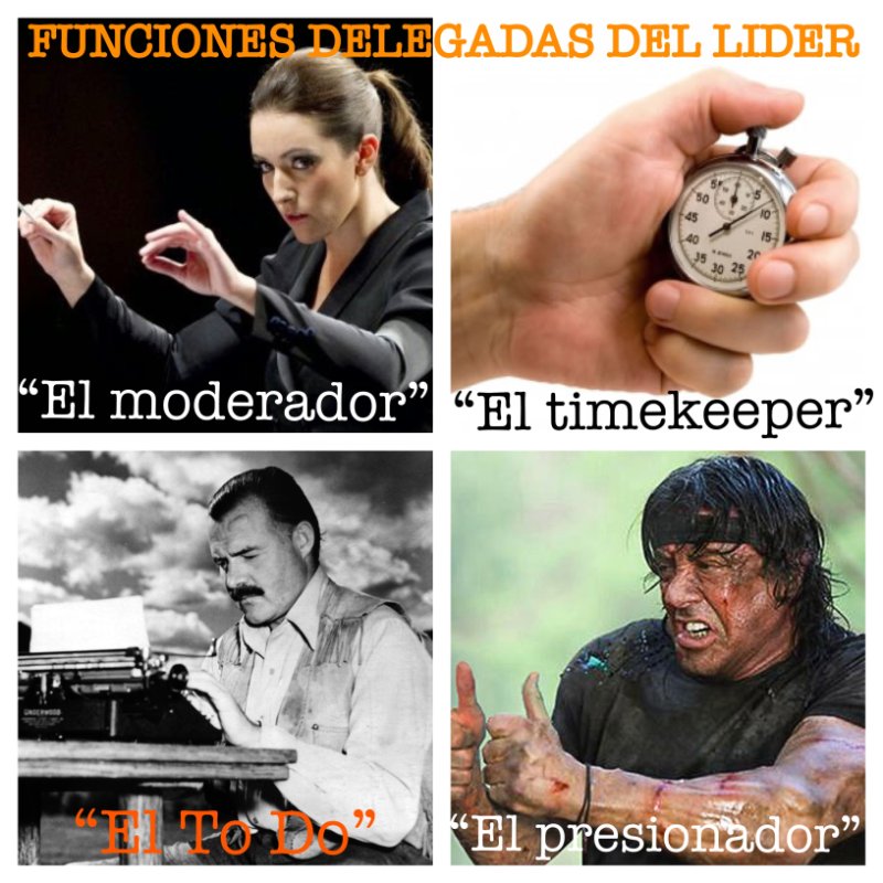 Marcador del ritmo. El que optimiza la gestión del tiempo. No solo lleva el cronometro sino que actúa informando al equipo de cómo transcurre la reunión paulatinamente.